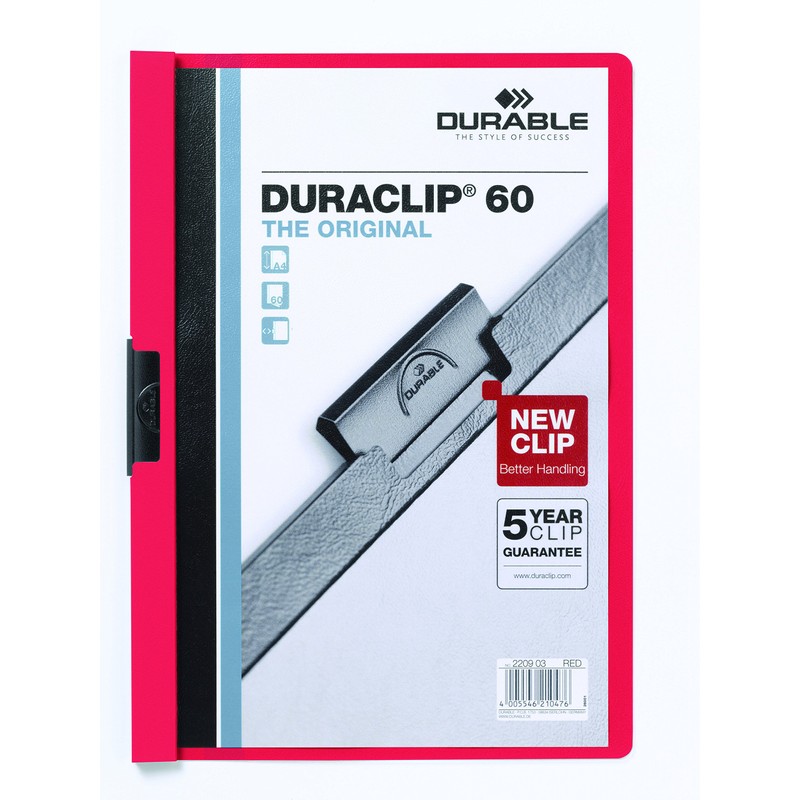 Durable Duraclip 60 Document File A4 60 Sheet Cap, Red, (220903)