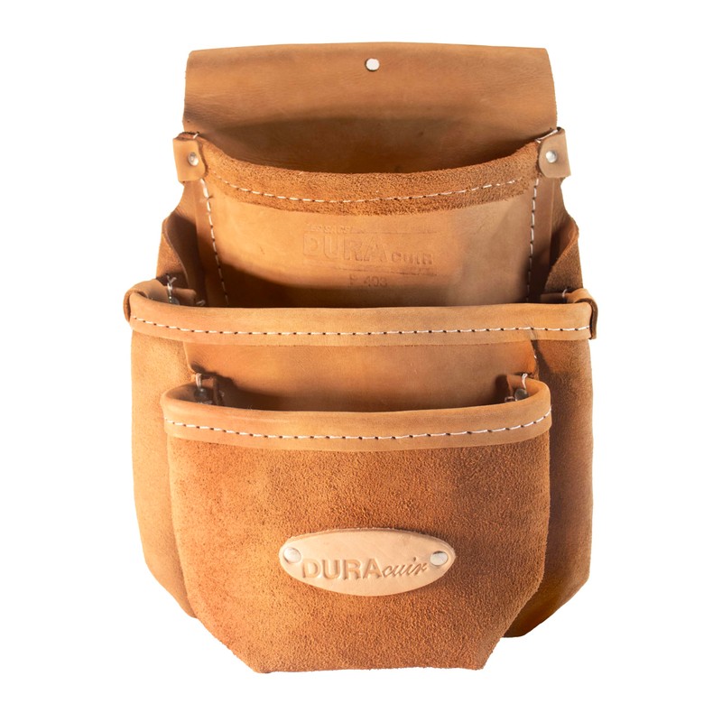 Duracuir Leather Tool Pouch, 3 Pockets, Tan Suede Construction