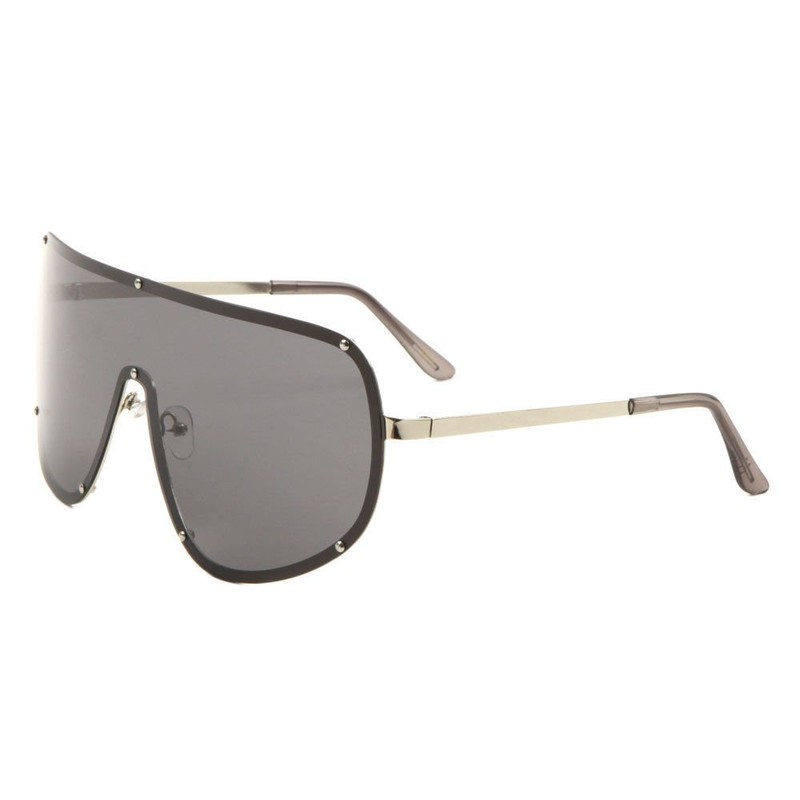 Dweebzilla Macho Man Oversized Shield Wrap Around Sunglasses (Silver Metallic Frame, Black Smoke)