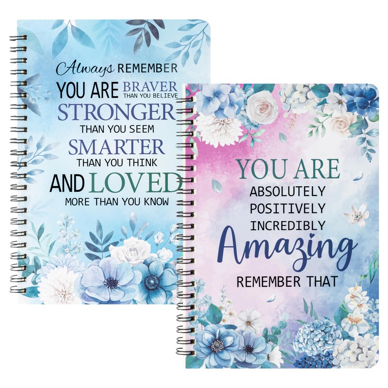 - WATERCOLOR FLOWER SPIRAL NOTEBOOKS: You will receive 2 floral inspirational notebooks with different designs. The cover is designed with inspirational text and the fresh, light blue watercolor flower theme is calming to the mind and body.