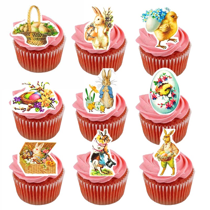 Easter Bunny Eggs Cupcake Topper Cookie Decorations 20X (Wafer- E06)
