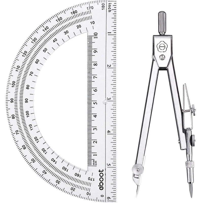 Drawing Compass and 6 Inch Protractor, Student Geometry Math Set
