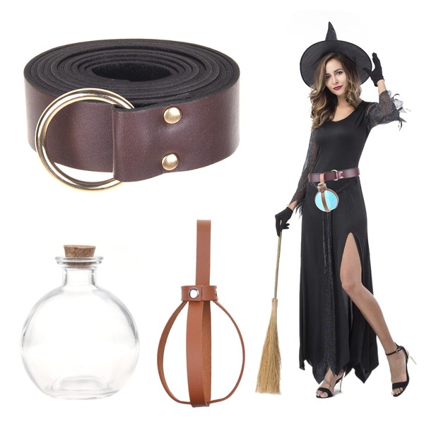 ECO-FUSED コスプレ ポーション ボトル ホルダー付き クリア 球形 魔法使い 魔女 コスチューム アクセサリー ストッパー ホルダー ベルトループ, ブラウンベルトとボトル, Bottle with Holder