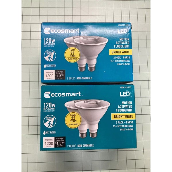 EcoSmart - 120W Equivalent-LED Motion Activated FloodLight Bulbs; 2 Pair-4 Bulbs.