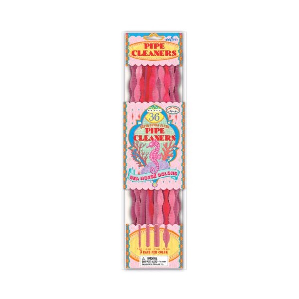 eeBoo's new line of super plush pipe cleaners come in 18 vibrant color assortments. Each 36 pipe cleaner pack contains 3 different colors and 4 different thicknesses per pack. Instructions for a different project idea are printed on the back of each package for inspiration, but children are also encouraged to use their imagination to create wonderful, one-of- a- kind crafts. Twist, curl or bend them into shape. The possibilities are endless!
