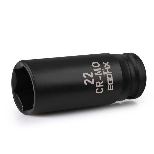 EGOFIX 1/2" Drive Deep Impact Socket, 22mm Socket, CR-MO, Metric, 6 Point