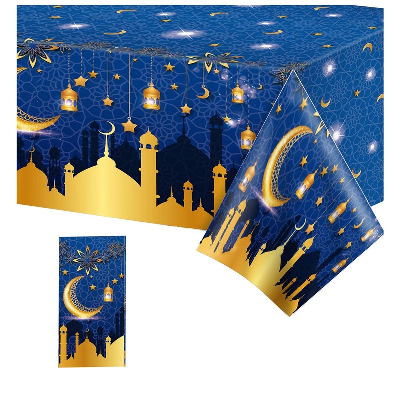 Eid Mubarak Table Cloth,Eid Tablecloth Plastic Eid Table Cloth Waterproof Eid Ramadan Table Covers Rectangular Tablecover for Eid Decorations Ramadan Decorations Home Party Table Decor,130x270cm