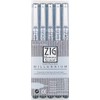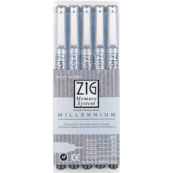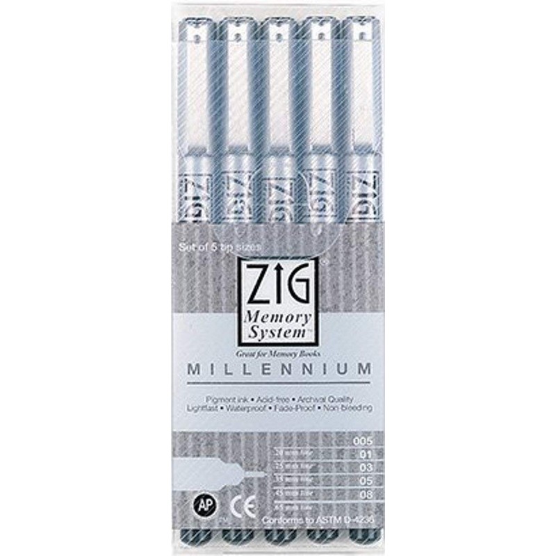 - Includes: 005 (.20mm), 01 (.25mm), 03 (.35mm), 05 (.45mm), and 08 (.65mm) Pens All in Black