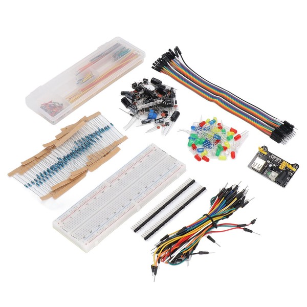 - [HUMANIZED DESIGN] - The package contains power module and USB data cable, and the components can be directly inserted into the breadboard, which is more convenient without soldering. COMPLETE AND USEFUL: This pack contains over 400 components to help you with fun and easy electrical experiments.