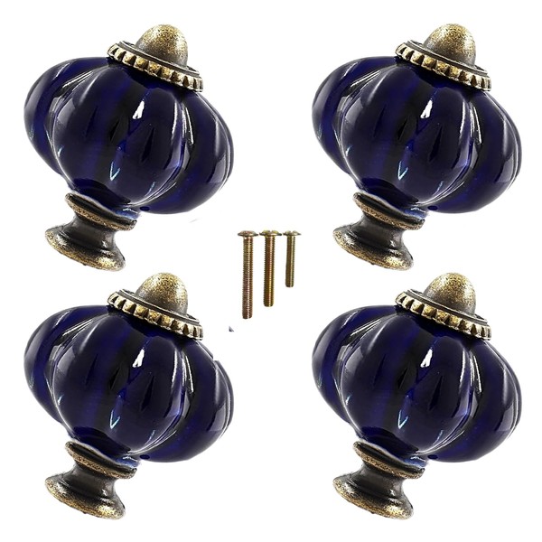 Eledabra Navy Blue Vintage Ceramic Cabinet Knobs, Dresser Knobs with Mounting Screws 4pcs