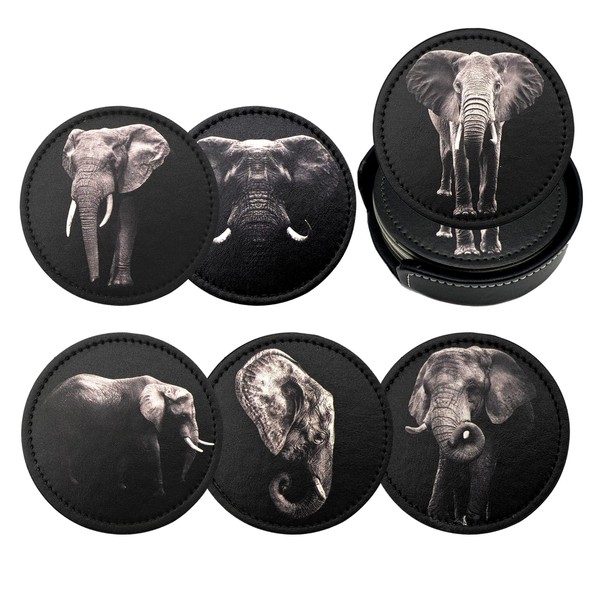 Elephant Coasters for Drinks with Holder Leather Coasters Set of 6 for Coffee Table