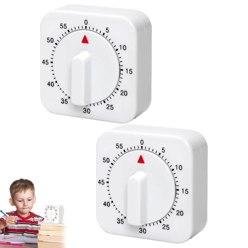 ElevaPulse Pack of 2 Mechanical Egg Timer, Kitchen Timer, Kitchen Timer with Loud Alarm, 60 Minute Kitchen Alarm Clock, White