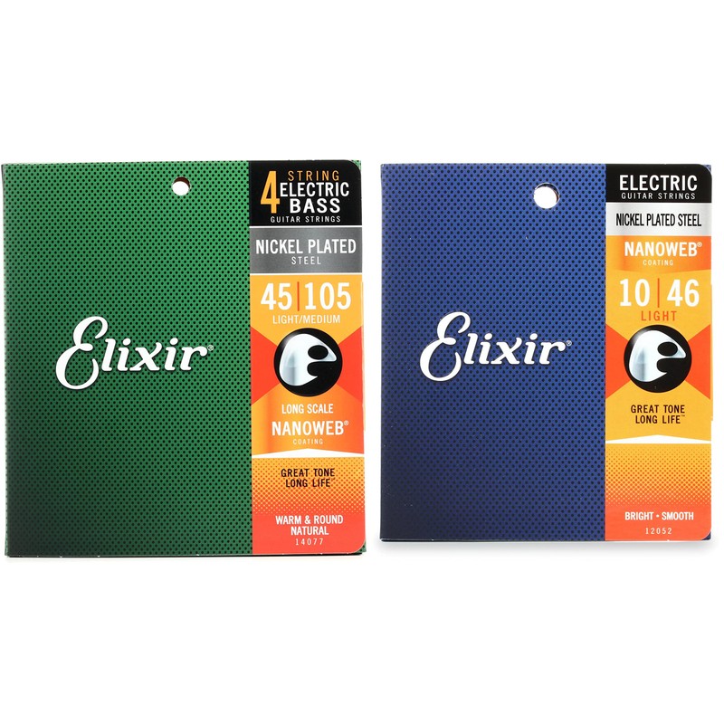 - .010-.046 Light Gauge Electric Guitar Strings, Nickel-plated Steel.045-.105 Nanoweb Medium Gauge Electric Bass Strings, Long Scale