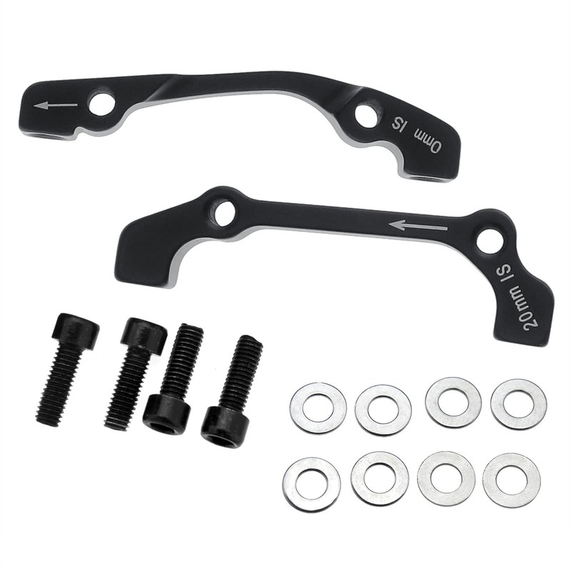 - High quality ultra-light aftermarket construction CNC machined low profile aluminium disc brake adapters for use with hydraulic or mechanical brakes. Fits 160mm front disc brakes and 160mm rear disc brakes, one for each.