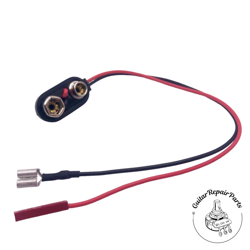 Solderless cable used for connecting the battery for EMG active electronics. measures approximately 7 inches.