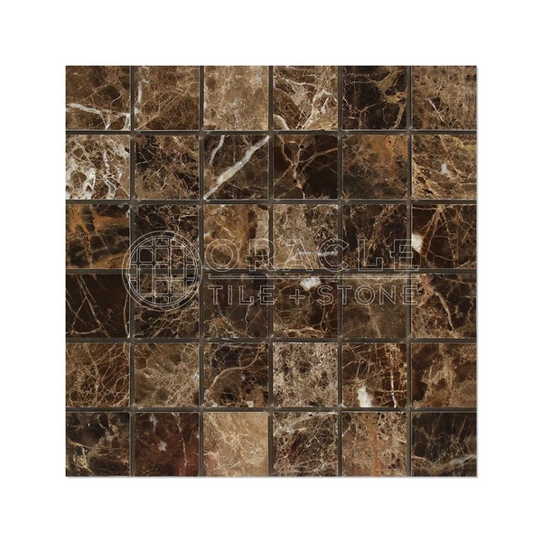 - 1 sheet of Emperador Dark Spanish Marble 2 X 2 Mosaic Tile, Polished