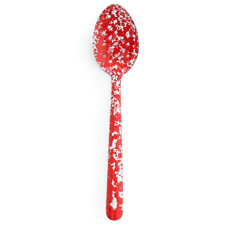 Enamelware Slotted Spoon, 12 inch, Red/White Splatter (Single)