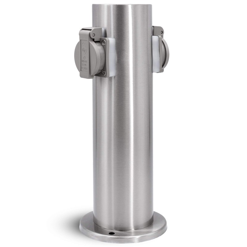 1 x outdoor socket column with 2 sockets, stainless steel, IP44