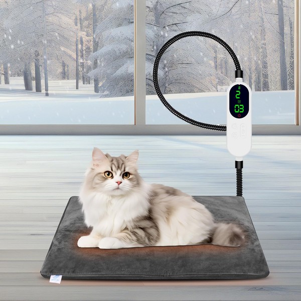 - Smart Timer Function: With 13 timer options, including an "always on" mode (time shows 00) and auto shut-off after a specific time period (1-12 hours), our dog heating pad saves energy while providing a safe and cozy environment for your pet. The timer LED displays remaining time for convenience