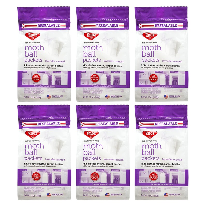 - ENOZ MOTH BALL PACKETS: These lavender scented flat moth ball packets are great for flat storage, like drawers, closet shelves, or blanket chests and trunks. Keep your delicate woolens safe from moths without the musty scent of moth balls or the mess of moth crystals