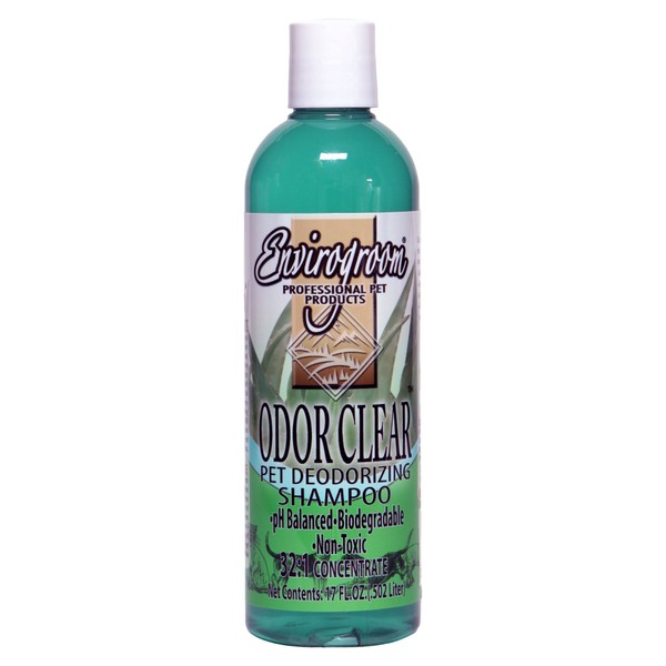 This premium professional deodorizing shampoo is the clear solution for removing unwanted odors. It works fast and effectively to eliminate the toughest odors including the worst skunk odor Makes a professionals tough job easy Leaves coat clean, manageable and is mild and non-irritating to the skin. Never drying. Odor clear is vitamin and protein fortified to condition the skin and coat