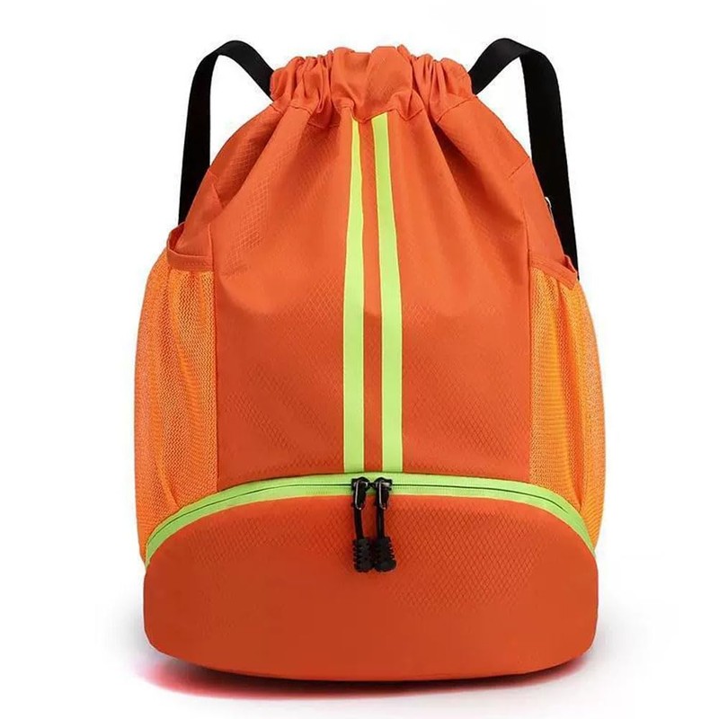 [EOMECUIGAO] ナップサック 防水 ジムサック おしゃれ ジムサックプールバッグ シューズポケット付きリュック 乾湿分離 大容量 巾着袋 水泳 運動 遠足 男女兼用 (オレンジ)