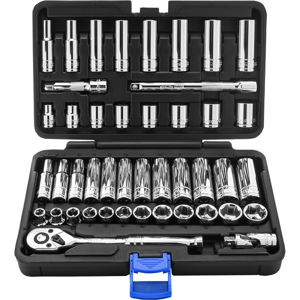 EPAuto 45 Pieces 3/8" Drive Socket Set with 72-Tooth Pear Head Ratchet