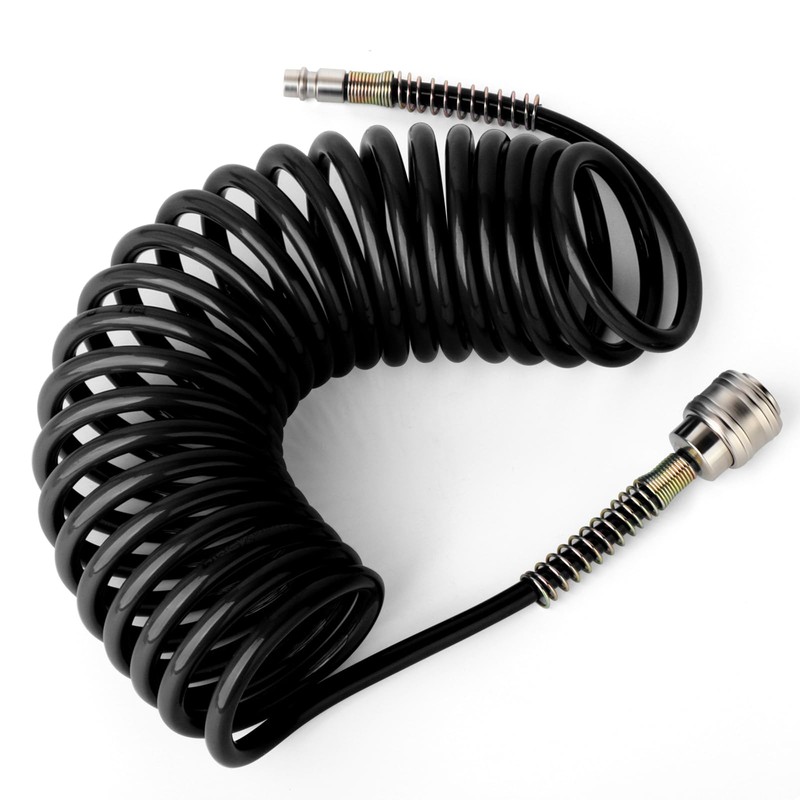 ERGAOBOY 1Pcs 8mm Polyurethane Air Compressor Hose, 5m Black Retractable Hose, Quick Coupler