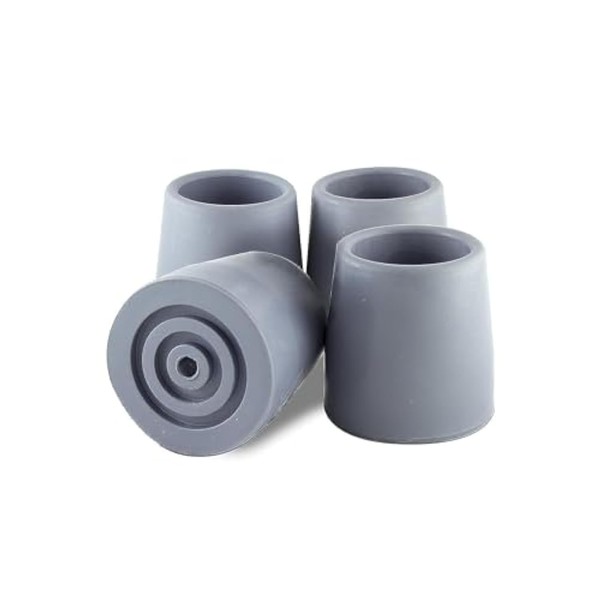 Essential Medical Supply Cane Tips - Replacement Pack of 4, Non-Skid Rubber Tips for Walking Canes, Designed to Fit 1 1/8" Wide Tubing with Metal Washer Insert, Grey Color