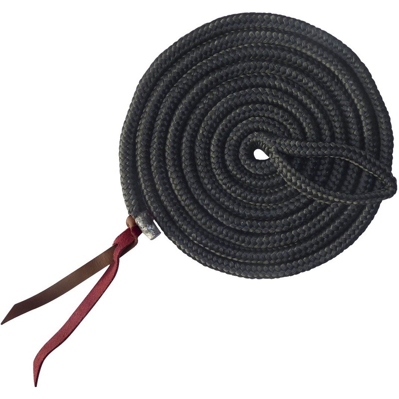 Ethological lunge made of soft polypropylene without carabiner, with attachment loop for the halter at one end and a double leather strap on the other.
