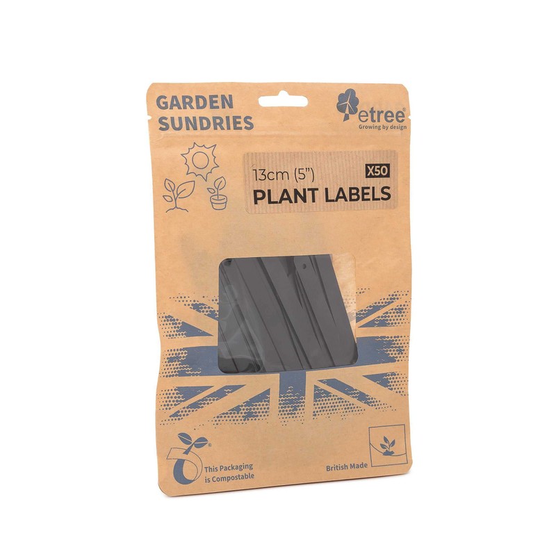 etree 50 x Plastic Plant Labels Black 5"