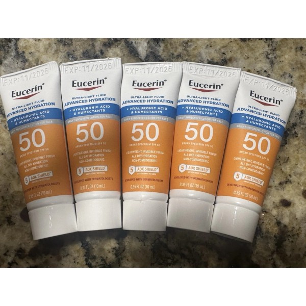 LOT 5 Eucerin Advanced Hydration SPF 50 .35FL /10ML Travel Size FREE SHIP.