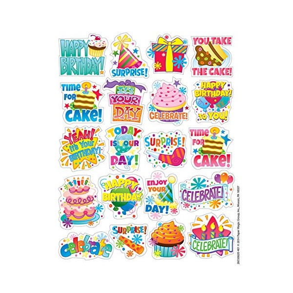 Eureka 655062 birthday stickers - theme each pack contains 120 stickers. Each sticker measures 1" x 1"
