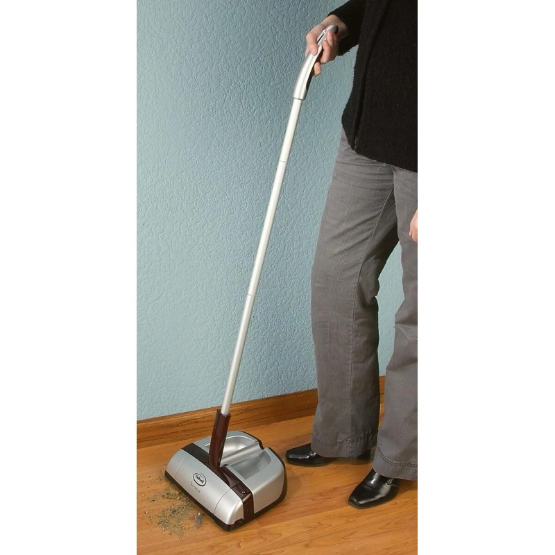 Carpets, tile, hardwood, laminate... the Breeze tackles 'em all. Best of all, the Breeze's powerful motor does it all without wires! Easy-empty dustpan; Soft-grip adjustable handle; Side brushes for better baseboard and corner cleaning; Adjustable-height carriage for all floor types; Foot-operated power switch; LED battery indicator lets you know when to recharge; Adjusts to hand-held size for stairs; For home and office; Large-capacity mop means less emptying; 10 3/4 x 9 x 4 1/4", handle 36". Weighs just 3 3/4 lbs