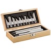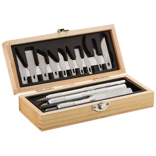 100% Made in the USA, premium quality knives and replacement blades in a wooden storage box. Set includes light, medium and heavy duty hobby knives K1, K2 and K6 with 13 assorted replacement blades for basic cutting, trimming and carving. Blades are interchangeable with Excel Knife Handles and Blades and also fits popular hobby knife brands including Xacto Knife. Blades are sharper than average craft blades, Excel hobby blades have a strong tip and flex without breaking to keep their edge and tip longer, and are coated in a thin layer of oil for rust protection. Perfect for craftsmen, artists, designers and hobbyists – wood carving, model kits, paper crafts and more.