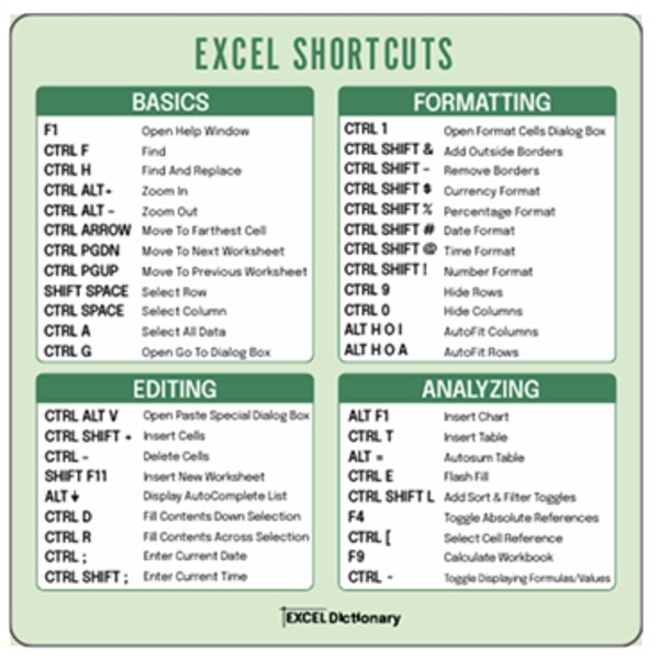 Excel Dictionary 42 Excel Spreadsheets Hotkey Reference Guide for Windows PC ...