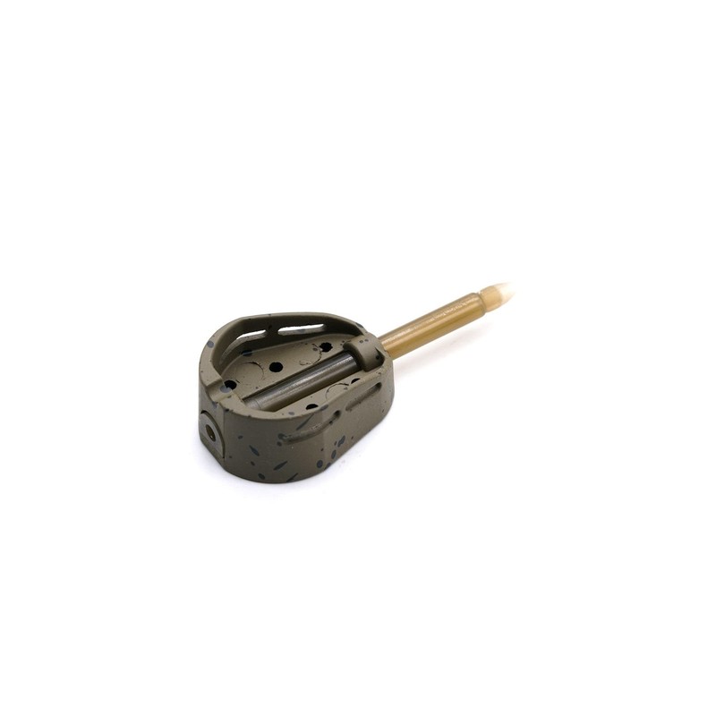 The unique design features a contoured, raised lip that keeps the bait parcel enclosed, offering the benefits of both a method and pellet feeder style with great casting properties. Plenty of holes in the frame of the feeder ensure that the bait that you pack onto it can be sucked off the feeder almost as soon as the feeder hits the deck, allowing you to convert bites quickly. It’s extremely quick to load too, which allows you to spend more time ‘on fish’ when you’re in the zone. To load, all you do is thumb a little dampened pellet into the base of the feeder, pop your hook bait on top and press a little more pellet over the top, slightly less firmly. The hook bait will always be presented to a fish that tries to feed on the feeder’s contents. This results in more bites, sooner after casting out. Available in: 18g Mini 24g Mini 24g Small 36g Small 28g Large 45g Large 32g Medium 42g Medium 55g Large