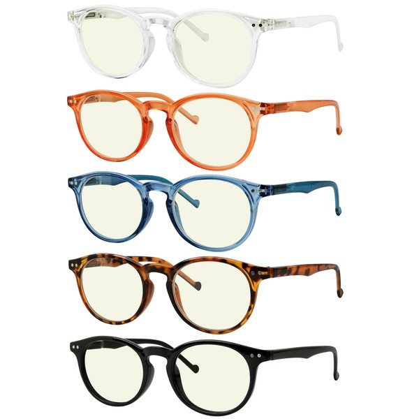 Eyekepper 5 Pack Reading Glasses Blue Light Blocking Computer Eyeglasses Oval Round +1.75