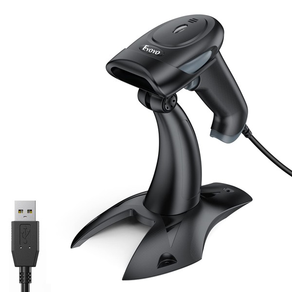 Eyoyo Barcode Scanner 2D, USB Wired Handheld QR Code Scanner with Stand, Auto Sensing Scanner for Handsfree, Screen Scanning Bar Code Reader for Computer, POS Market, Library, Store, Medical