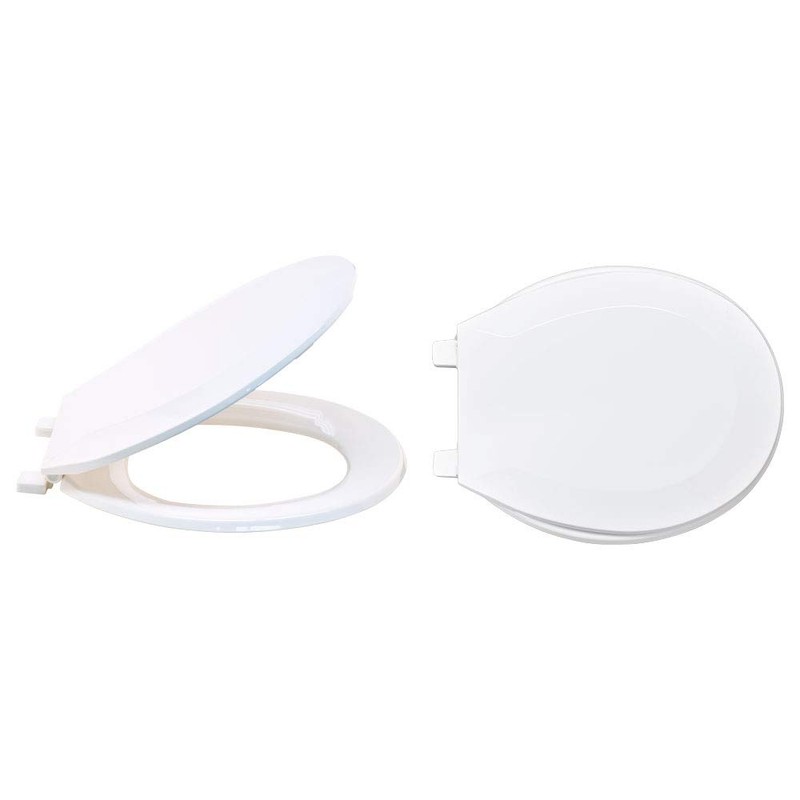 The EZ-FLO 65901 White Plastic Stain Resistant Round Toilet Lavatory Seats Assembly Installation Kit is made from plastic which is smooth and easy to clean. It measures 15.8 x 14.5 x 1 inches. The heavy plastic body is stain and corrosion resistant. This white toilet seat has a closed front which is designed for round bowls. It comes complete with a lid and all other necessary hardware parts which makes installation quick and easy. It is a heavy-duty seat and comes with a 5-year warranty.