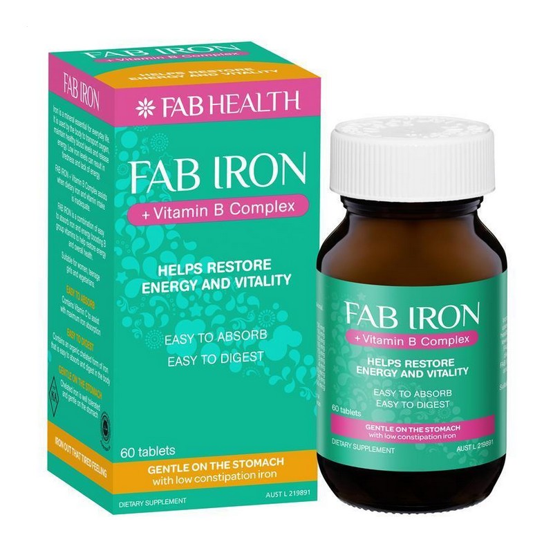 Iron is a mineral essential for everyday life. It is used by the body to transport oxygen, maintain healthy blood levels and release energy. Low iron levels can result in tiredness and lack of energy.Fab Iron + Vitamin B Complex assists when dietary iron and vitamin intake is inadequate.