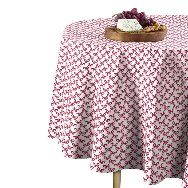 Fabric Textile Products Round Tablecloth, 100% Milliken Polyester, Machine Washable, 84" Round, Red Christmas Bows