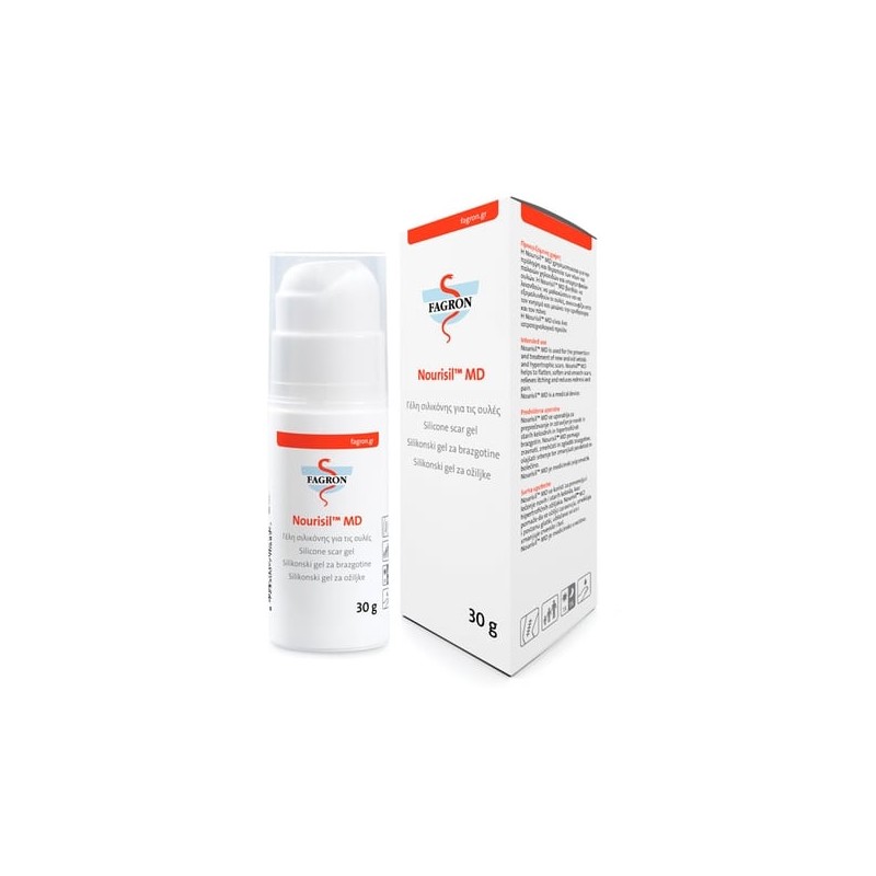 Nourisil ™ MD is an ultra-light, transparent, fast-absorbing silicone gel that has been developed to prevent and treat new and old keloid and hypertrophic scars resulting from general surgery, sores, wounds, or burns. It contains a unique blend of five silicones and vitamin E to maintain the balance of skin moisture, while improving the appearance of the scar. Helps to: