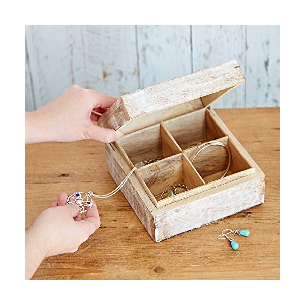 Fair Trade Mango Wood Box with leaf design 175 x 175 x 95mm