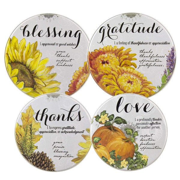 • Fall Themed Kitchen Decor - these decorative electric stove burner covers will brighten your kitchen with their flowers and positive words.