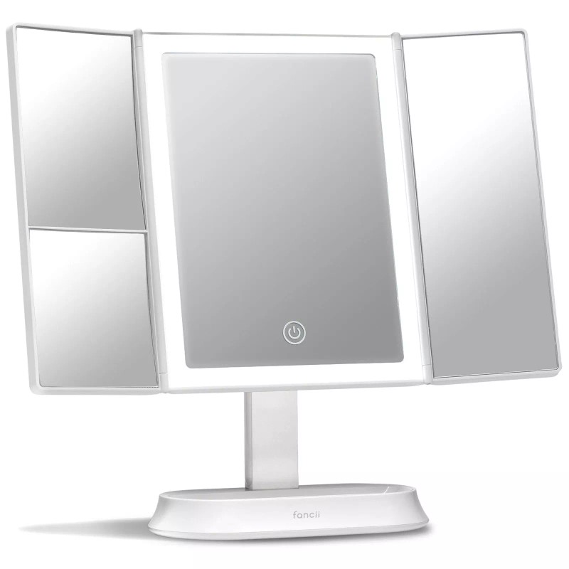 Fancii Makeup Mirror with Natural LED Lights, Lighted Trifold Vanity Mirror w...