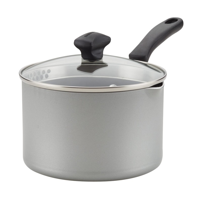 Farberware Cookstart DiamondMax Nonstick Straining Saucepan, Dishwasher Safe, 3 Quart, Silver