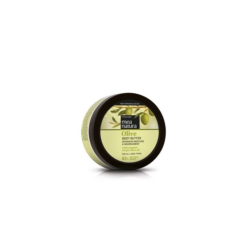 Farcom Mea Natura Olive Body Butter with organically cultivated virgin olive oil, Vitamin E and beeswax, a natural blend of ingredients with antioxidant and moisturizing properties for increased and effective skin protection.