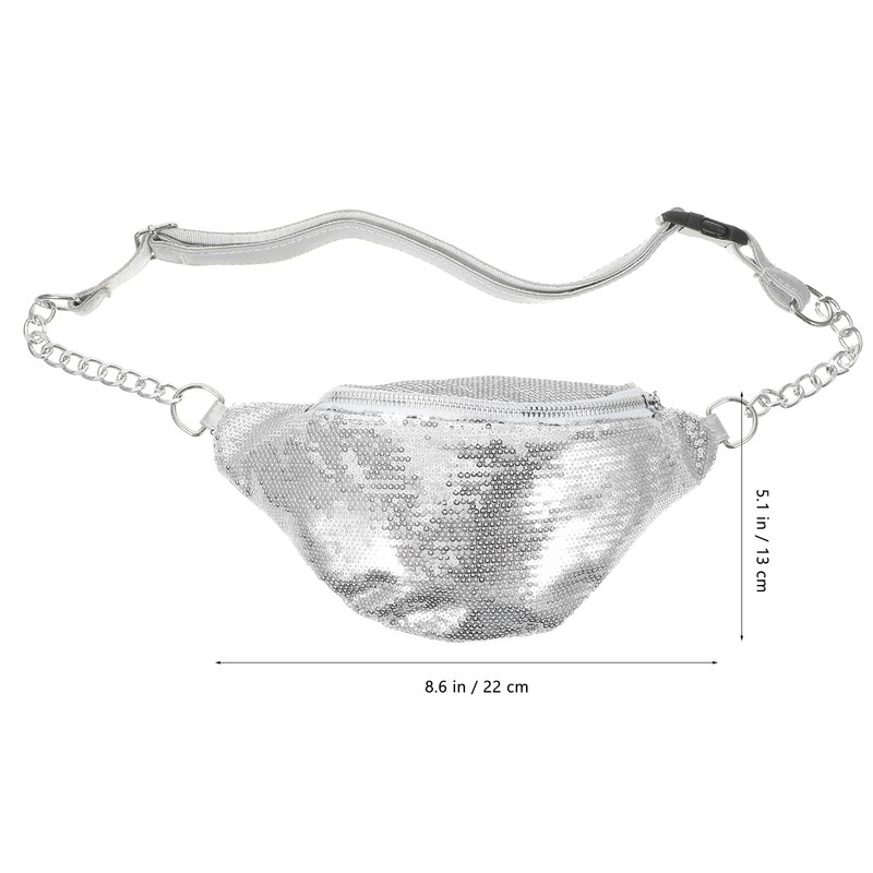 Fashion Bum Bag Silver Metallic Sequins Bag Belt Bag Sequins for Girls (Silver), silver