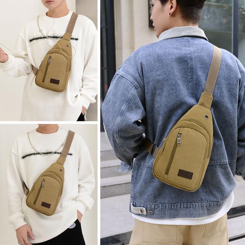 Fashionable Men's Canvas Chest Bag- Adjustable Strap, Casual Korean Style Mes...